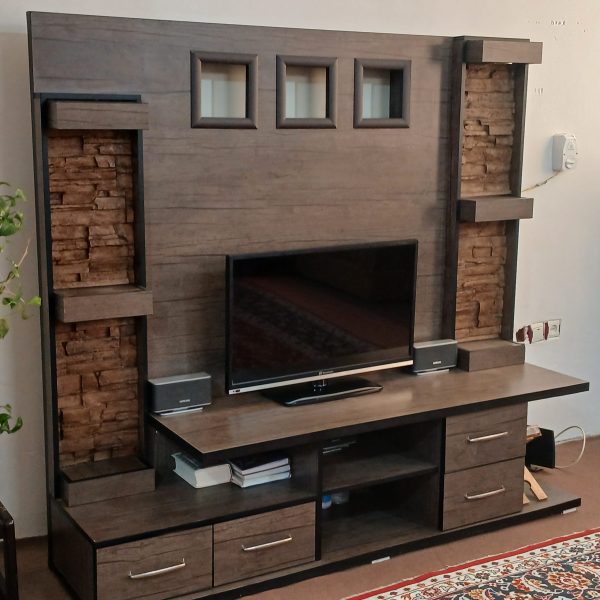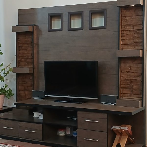 میز تلویزیون بزرگ تمام ام دی اف (طرح چوب) با چهار تا کشو