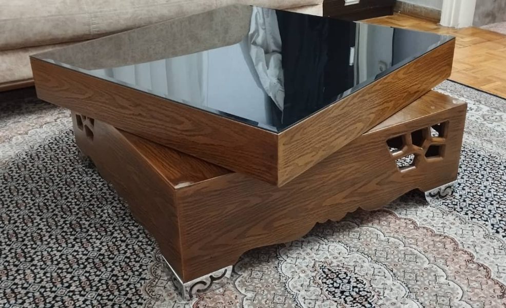 میز جلو مبلی سالم و مقاوم بدون خط و خش با شیشه سالم پایه ها فلزی