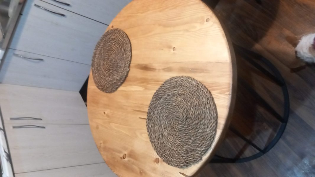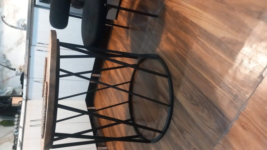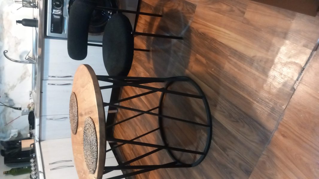میز ناهار خوری ۲نفره چوب و فلز مدرن با ۲عدد صندلی پارچه تدی مشکی برای عروسو داماد ماه ابان خریده شد نو و سالم