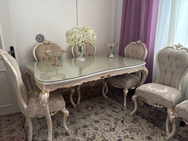 میز ناهار خوری 6 نفره با کیفیت چوب عالی کاملا نو هست