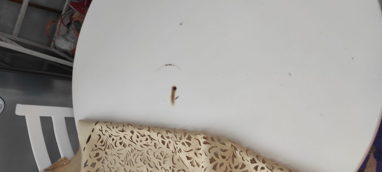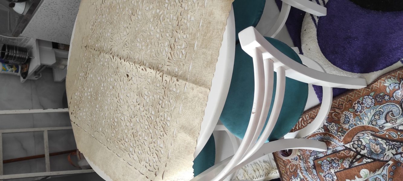 میزو صندلی ها سالم هستن فقط وسط میز یه سوختگی جزئی داره که با رومیزی یا رنگ رفع میشه