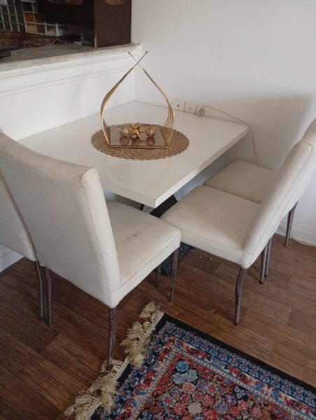 سالم ۴نفره رنگ سفید صندلیهای چرم که هر کدوم از صندلیا رو تو دیجی کالا بخرید ۲تومنه ولی من کلا۳۸۰۰میدم