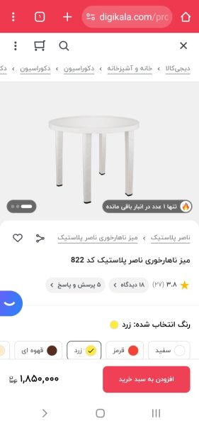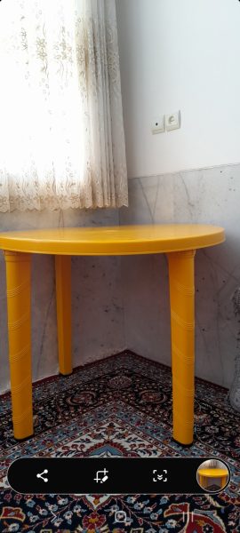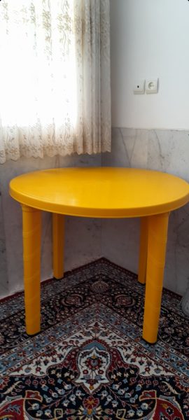 یک عدد میز پلاستیکی گرد زرد رنگ