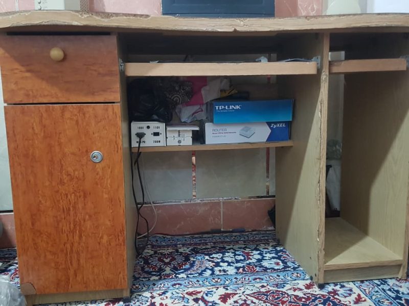 میزکامپیوتر طرح چوب با مشتری واقعی کنار میام