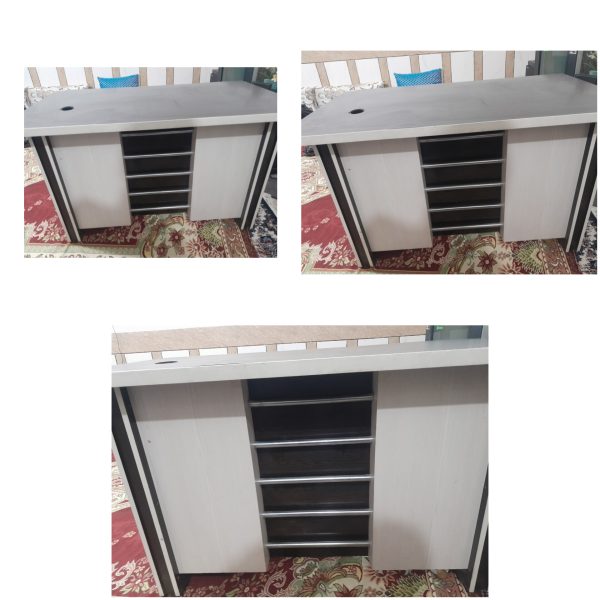 میز کامپیوتر در حد نو رنگ قهوه ای سوخته و سفید