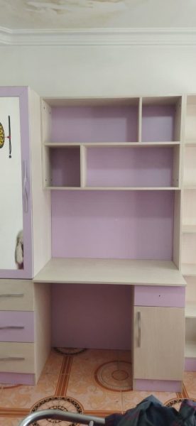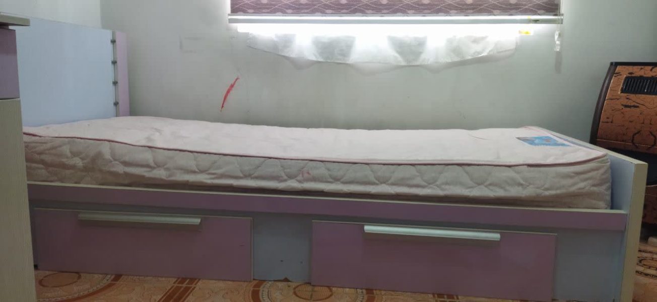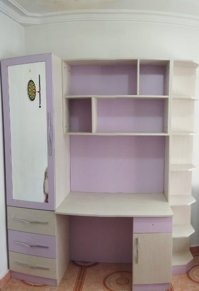 میز کمد دار و کتابخانه، صندلی، تخت، تشک،پرده