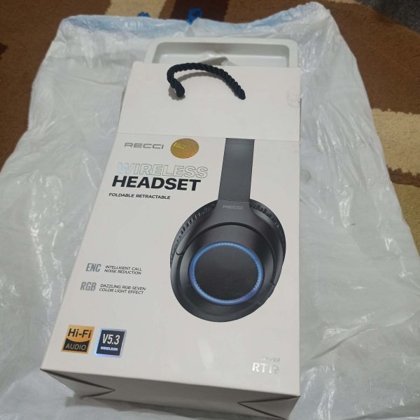 هدست بلوتوثی رسی از تی ۱۹، قابل اتصال با بلوتوث و کابل AUX، پنج تا هفت ساعت با شارژ کار میکنه.