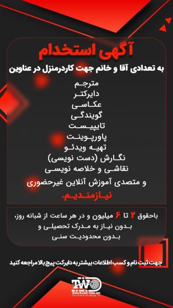 📲💻استخدام  نیرو  در ارتباط با کارهای اینترنتی از قبیل: