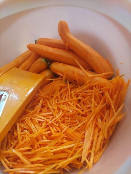 هویج رنده شده و خرد شده و هویج و پیاز سرخ شده