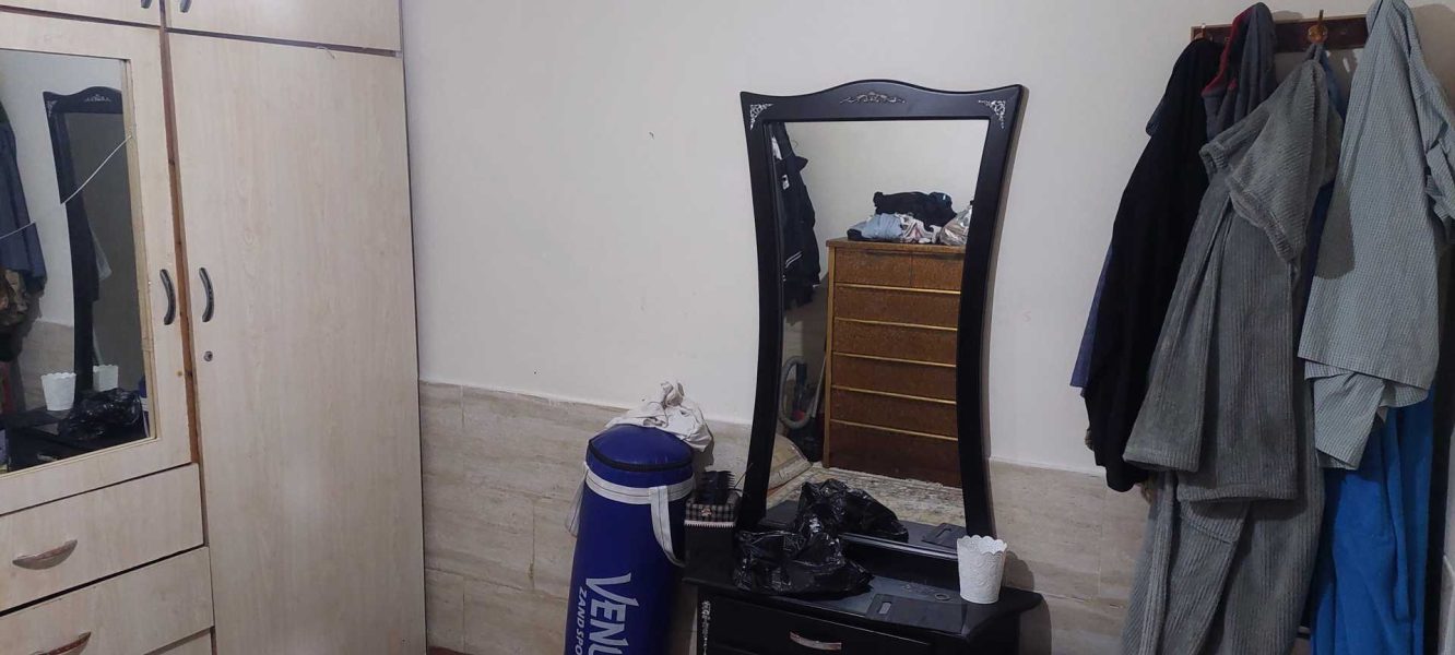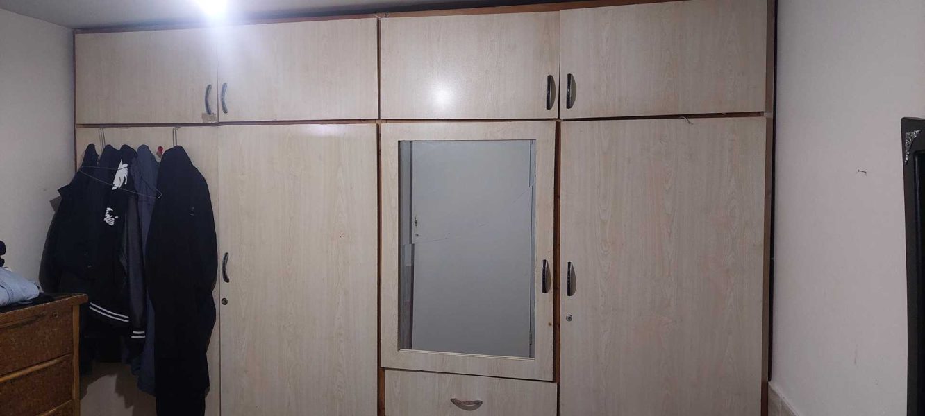 کابینت MDF و کمد دیواری جدید با فضای زیاد و آینه، تازه رنگ شده.