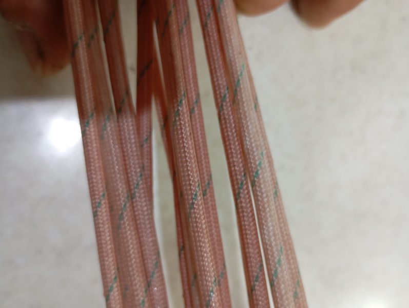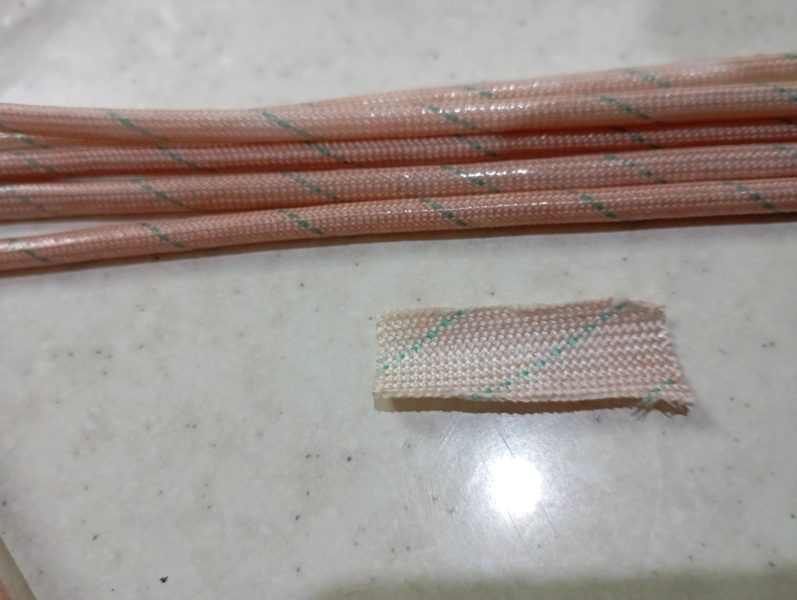 وارنیش نسوز با روکش سیلیکون قطر 3 میلیمتر، این نوع وارنیش نسوز از نخ الیاف شیشه بدون آلکای بافته شده، سپس لایه ای از رزین سیلیکون بر روی آن و در حرارت بالا پوشش دهی می گردد. با توجه خاصیت عایق حرارتی