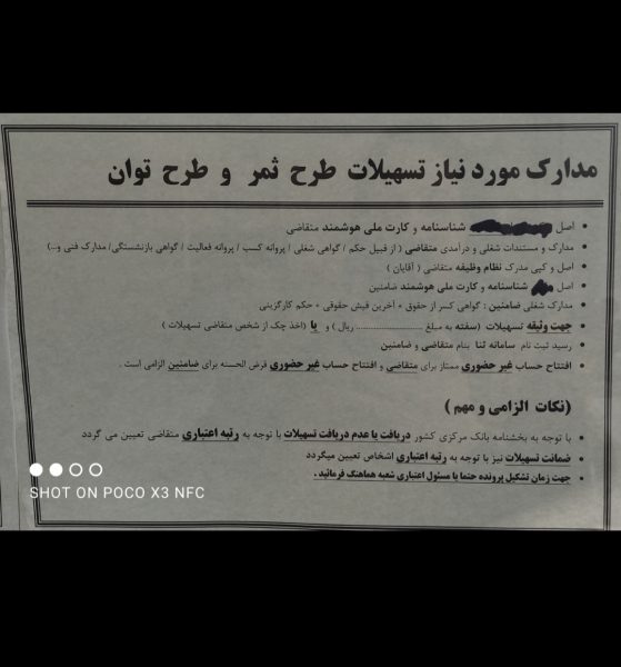 شرایط مدارک و ضامن در عکس کامل نوشته شده