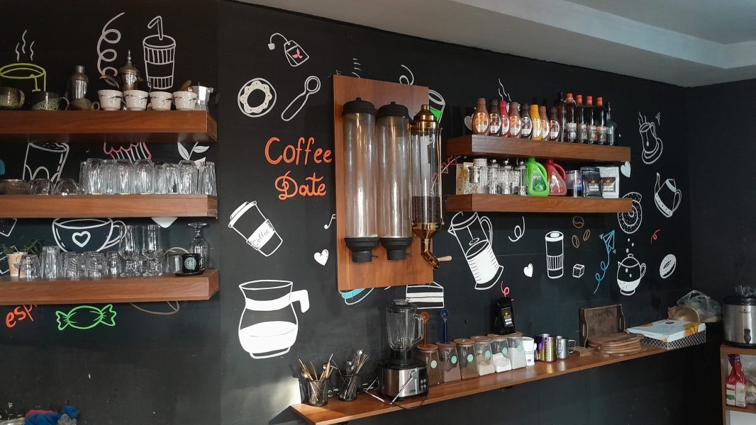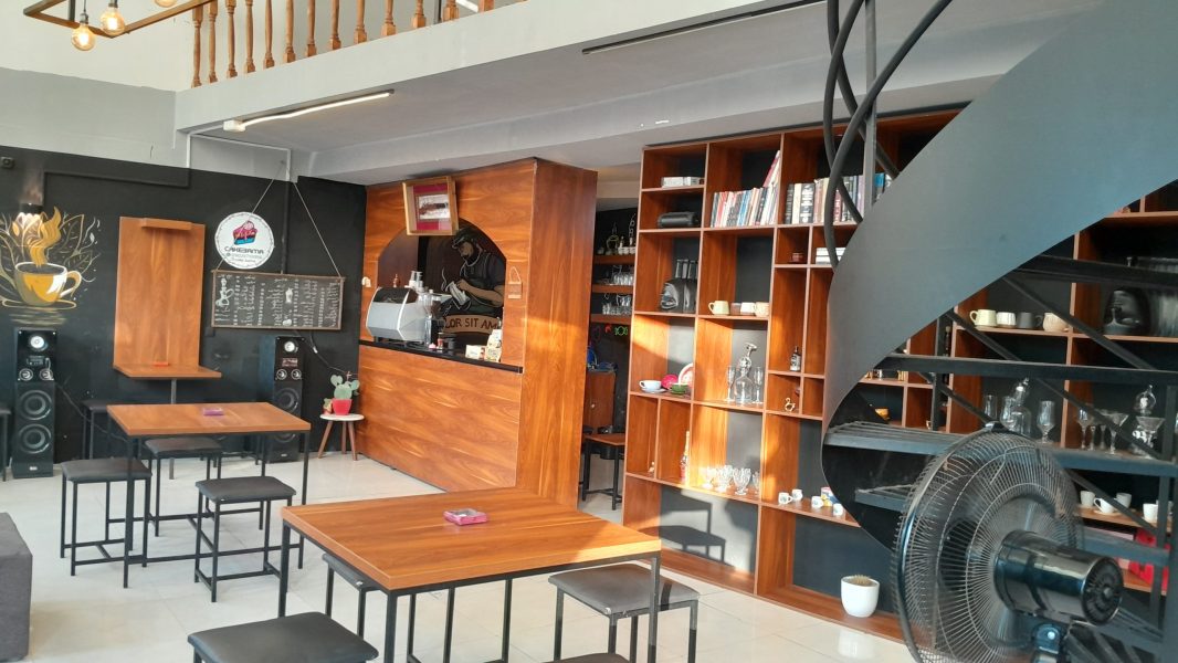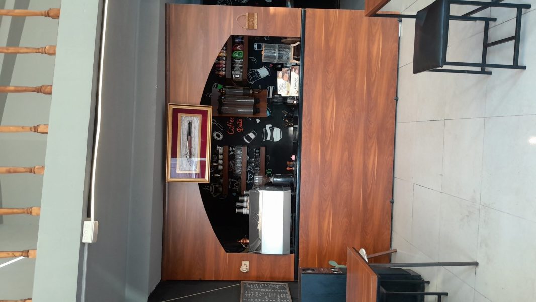 با کلیه تجهیزات اعم از دستگاه قهوه ساز حرفه ای میز و صندلی و دکوراسیون درجه یک ظرف و ظروف و آسیاب حرفه ای و یخچال کولر، دستگاه اسنک ساز دستگاه آبمیوه گیری با کلی مواد اولیه،گاز،تابلو،سرخ کن. مبلغ کلی پانصدو پنجاه میلیون تومان