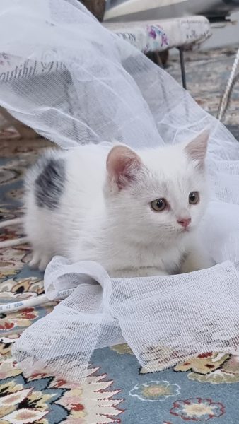 یک عدد بچه گربه ۳ ماهه که از ابتدا منزل خودمون بدنیا اومده و اصلا بیرون از منزل نرفته ، چون شرایط نگهداری ش رو ندارم