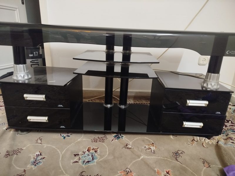 میز تلویزیون شیشه ای ترک چهار کشو