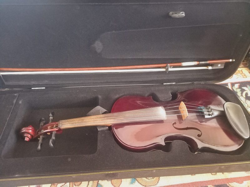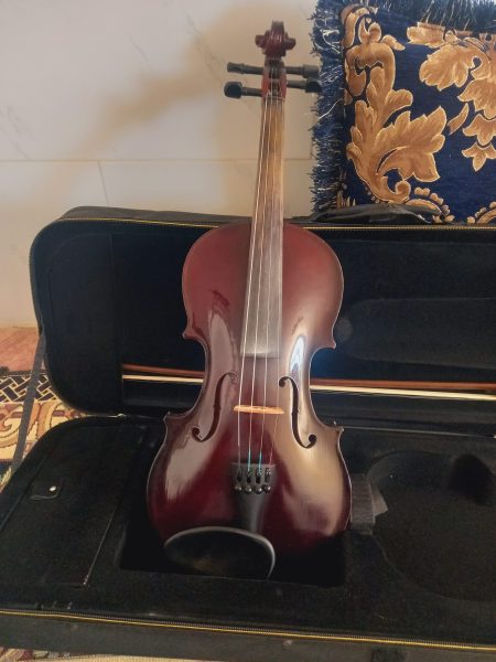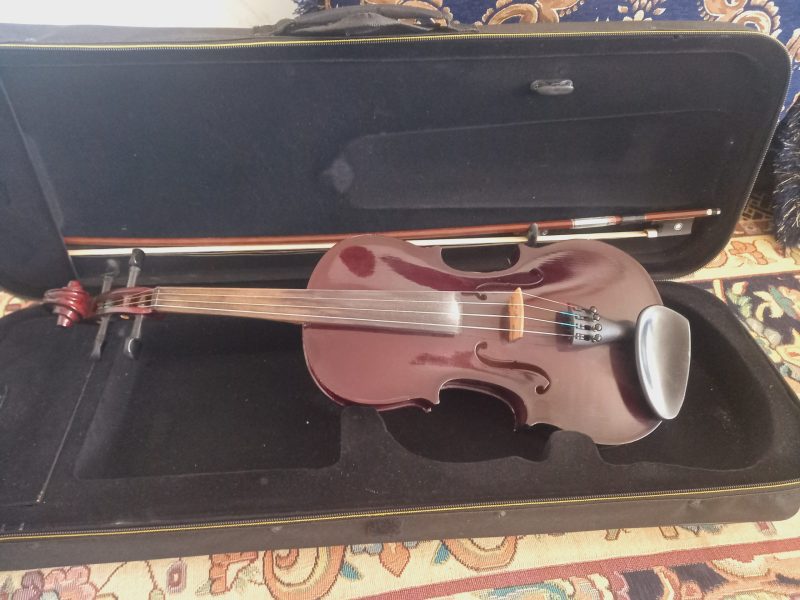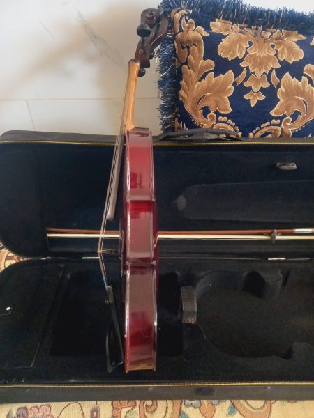 ویولن ب رنگ شرابی،همراه با آرشه ، کلیفن و هاردکیس.