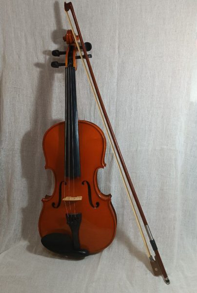 یک ویالون تی اف مدل استیودنت همراه با تمامی وسایل (کیف،بالشتک،مترونم،کلیفون) با رنگ زیبای قهوهای به صورت سالم ،نو و تر و تمیز به فروش میرسد.