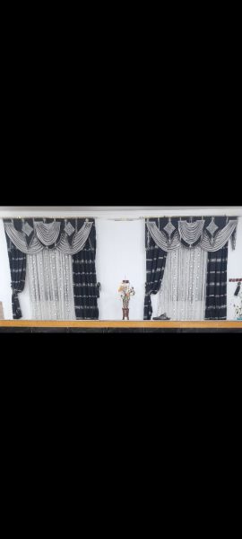 پرده بیس متری حریر ترک که به صورت دوتا ده متری هست و دوتا هلال رویه پرده وجود دارد،پرده ها نو میباشد و هیچ گونه ضدگی ندارد و در پذیرایی میشود استفاده کرد ،13 متر حریر پارچه میباشد و 7 متر دستک هایه کنار پرده که مشکی هست..