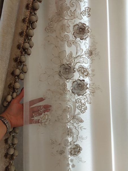 اول :در عرض ۱۸۰درارتفاع ۲۲۰ حریر و آستر بهم دوخته شده با دوعدد شالی هر طرف