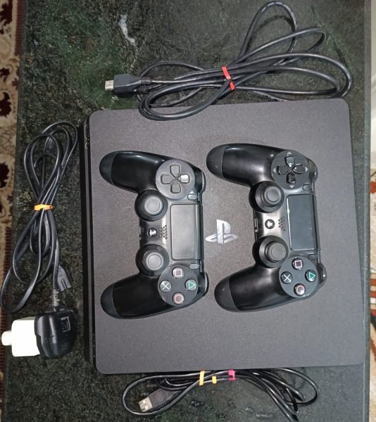 دستگاه ps4اسلیم اکانتی حافظه 1ترابایت 4بازی دارد_ جی تی ای وی _کلتوار_فیفا23ویک بازی دیگر بی اطلاع از اسم بازی این دستگاه دارای 2دسته است و با تمام کابل های وصل و یک کابل شارژ ورژن 10هستش