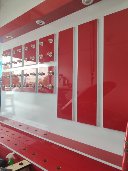 پنل شیرآلات باکلاس دارای نورپردازی هالوژن و چوب ام دی آف بادوام و دارای جای علم دوش و پایه اهنی مخصوص خودش