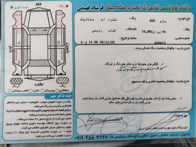 | وضعیت بدنه | چند لکه رنگ |