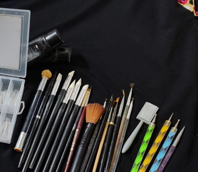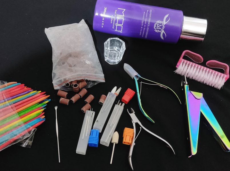 سوهان و انواع سر سوهان ها،یووی فن دار،لنز و انواع وسایل طراحی ناخن،انواع قلم برای طراحی،۴۵عدد لاک،ضدقارچ،پرایمر،تاپ شاین،عقب زن فلزی و یک بارمصرف،پودر سفیدوهلویی