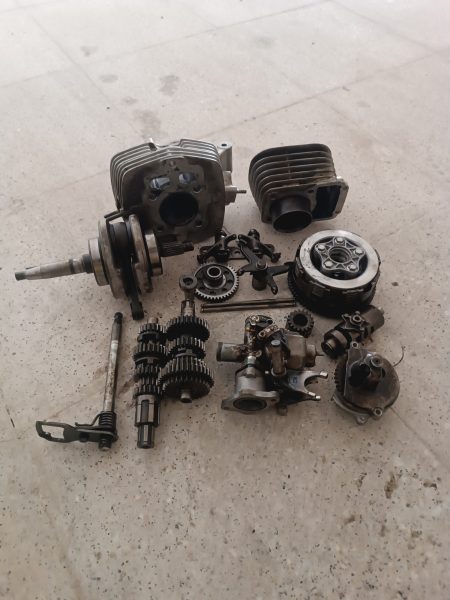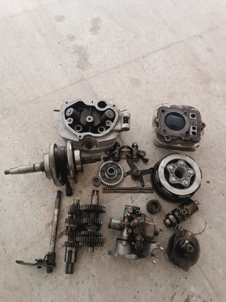 سر سیلندر سوپاپ ها ابندی شده میلنگ شاتون سالم دیسک و بچه دیسک آویل پمپ میل تایپیت گیربکس ستاره ایی توپی دنده ماهک شفت دنده کاربراتور سالم