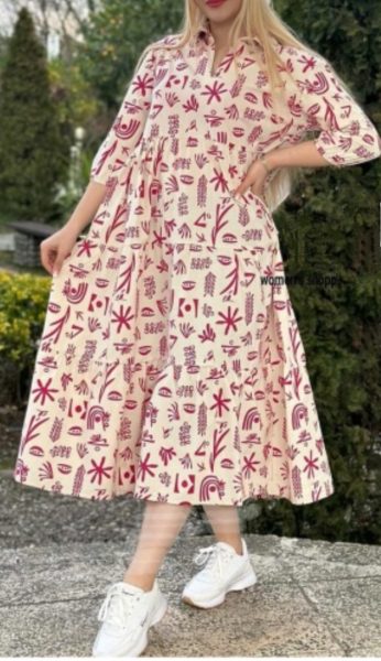 پیراهن لینن طرحدار چاپی