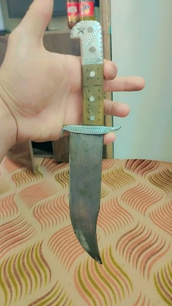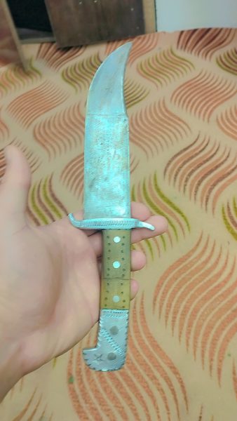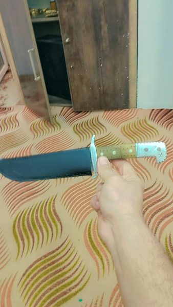 چاقو قدیمی همراه با غلاف.کامل پین گذاری شده قبضه دار هست دسته استخوان هر چی بگم کمه این کاره باشی میفهمی از تو عکس.ب مشتری واقعی تخفیف جزئی داده میشود