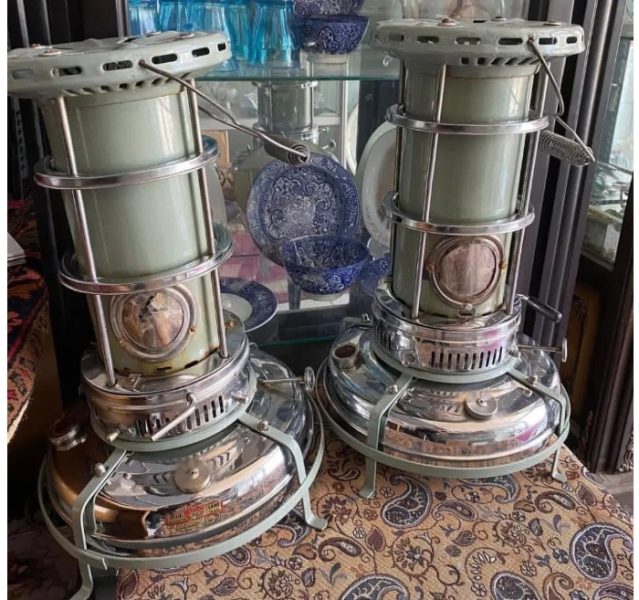 با احترام دوعدد چراغ نفتی فوق العاده تمییز داری کارتن دفترچه و فیتیله ی زاپاس بدون هیچ گونه خوردگی و ضربه و چون این مدل اصلی عالی نسب می باشد باک نفت آن برنجی می باشد .