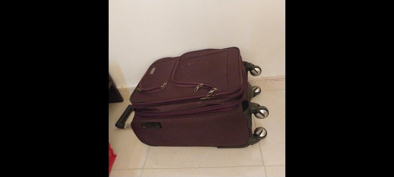 یک چمدون مسافرتی سایز متوسط تروتمیز رنگ بنفش تیره جنس چمدون واقعا عالی ۴چرخ هستش بخاطر مسافرت زیاد یکم سایزش کوچیه ب همین خاطر مایل ب معاوضه با بزرگ تر هستم