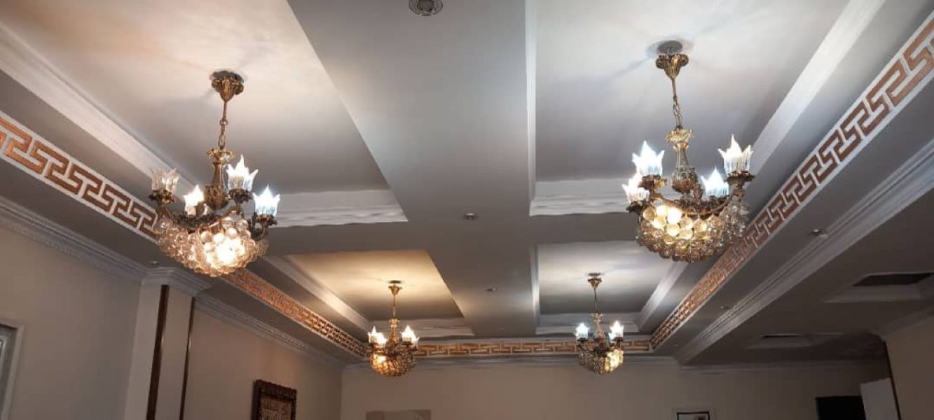 لوستر برنز با کریستال شرابی رنگ در حد نو سالم.