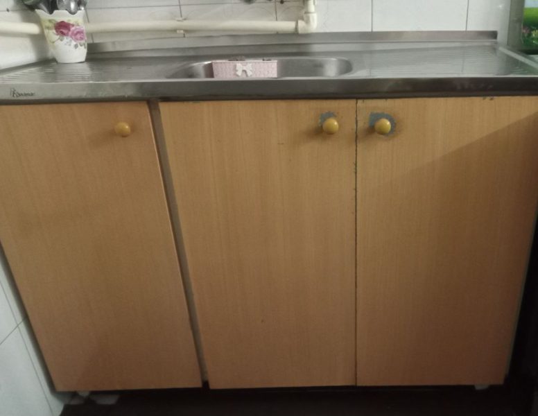 کابینت فلزی رنگ کرم ۳ متر با سنگ رویه