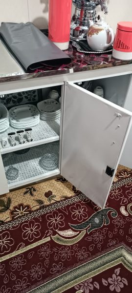 کابینت سه در تمام فلزی رنگ سفید بدون هیچ گونه خط وخشی صفحه بای استیل سالم هتش به خاطر تغییر دکوراسیون می فروشم