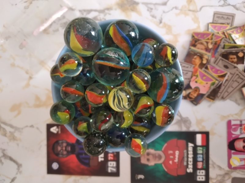 103 تا تیله و ۳ تا مجسمه و۲۰ تا کارت یک دونه اش امضا داره و ۳۰۰تا کارت کوچیک