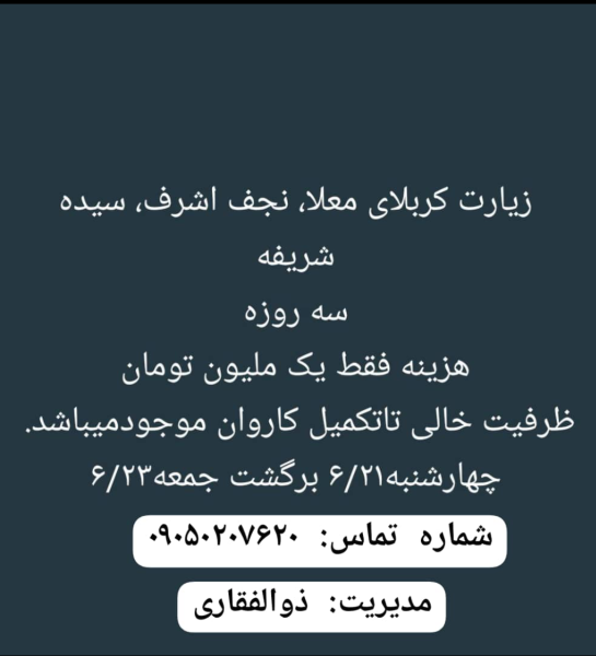 زمان حرکت چهارشنبه ۶/۲۱زمان برگشت۶/۲۳