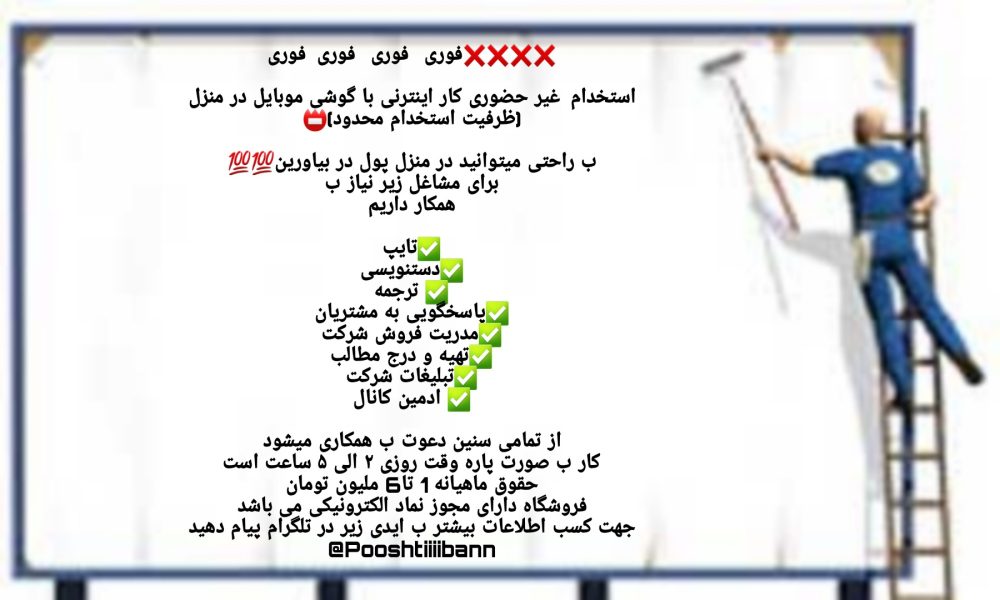 ⚡به تعدادی خانم و آقا برای کار به صورت غیر حضوری نیازمندیم. با ۱۲ نوع شغل متفاوت ✅