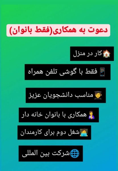❌❌دعوت به همکاری برای بانوان عزیز❌❌