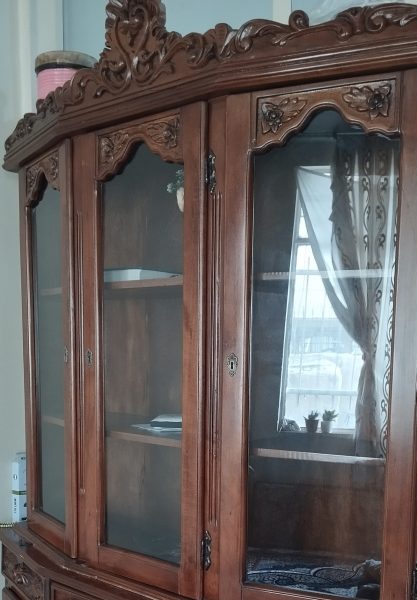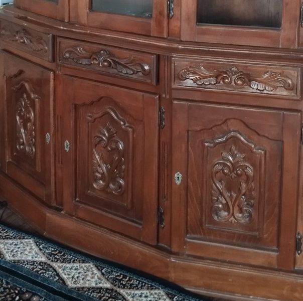 دارای دو تیکه کشو و کمد و تیکه بالا شیشه ایی