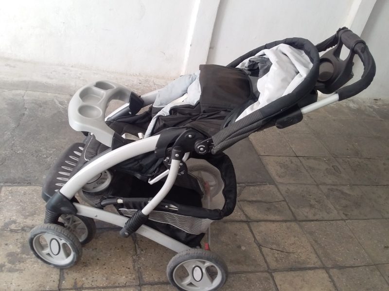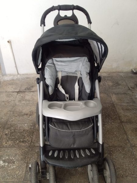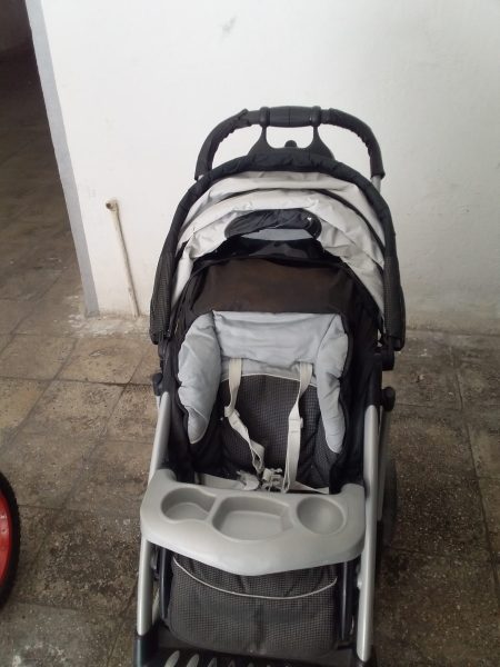 یک عدد کالسکه بچه برند تاشو چرخش ۳۶۰ درجه چرخها. قابلیت تنظیم نشیمن در چهار حالت در حد