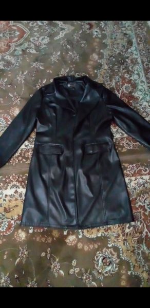 کاپشن چرم مشکی کمربندار در حد نو چند بار بیشتر استفاده نشده فری سایزشامل تخفیف
