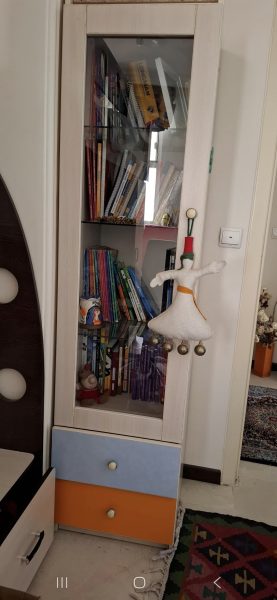 کاملا سالم و نو، تمام MDF، ارتفاع ۱۸۰، ۵۰×۴۵. دارای دو‌کشوی خوب و سالم (رنگی)