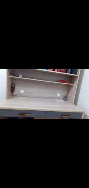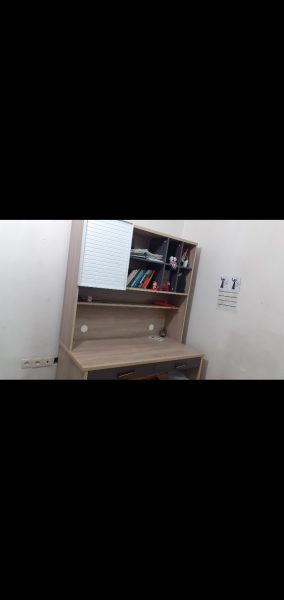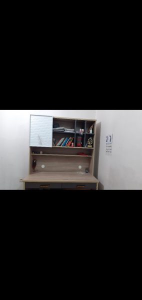 کتابخانه و میز تحریر بسیار بسیار تمیز و بزرگ و جادار.دوسال کارکرده.دارای یک کمد و دو کشو و کتابخانه است.زیر میز جا برای وسایل اضافه هم هست.برای مشتری واقعی تخفیف داده میشه🌹
