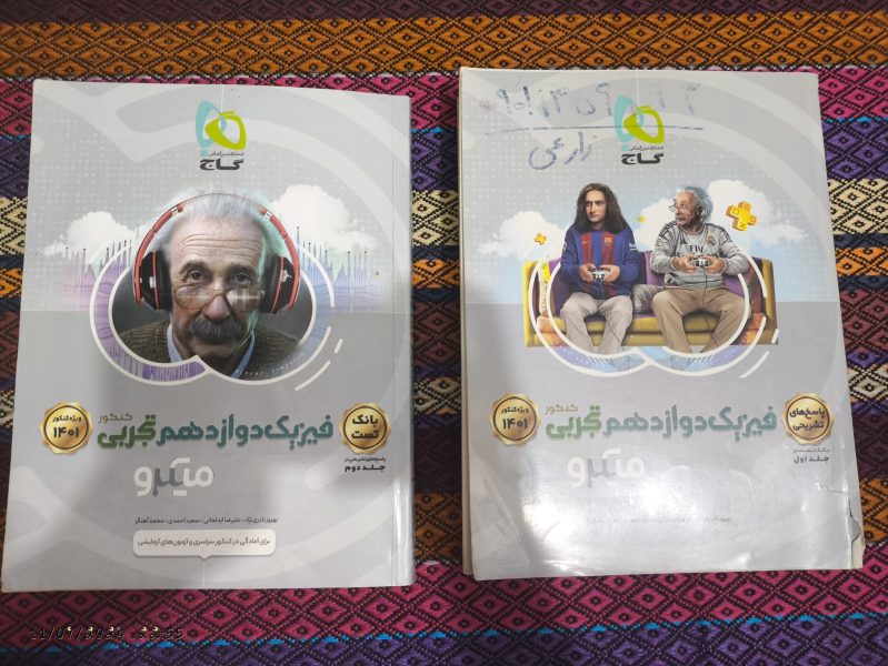شیمی۱۴۰۲ جامع و تک پایه دوازدهم،فیزیک ۱۴۰۱تک پایه دوازدهم ،ریاضی مهرماه۱۴۰۲جامع ،زیست دوازدهم ۱۴۰۲-۱۴۰۳ دارم نصف قیمت جلد کتاب