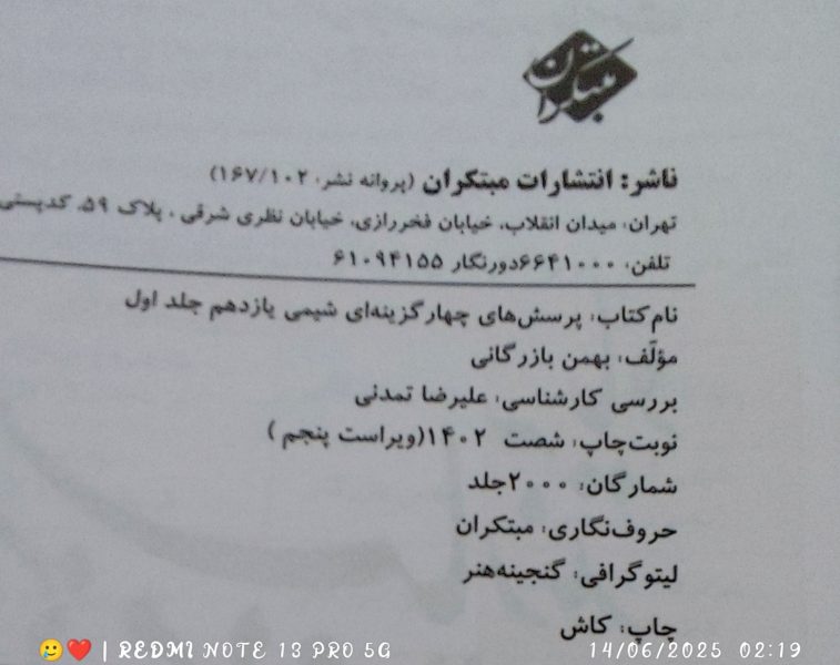 کتاب شیمی مبتکران یازدهم دوجلدی چاپ ۱۴۰۲ هرفصل بصورت جدا سیمی شده بدون خط خوردگی