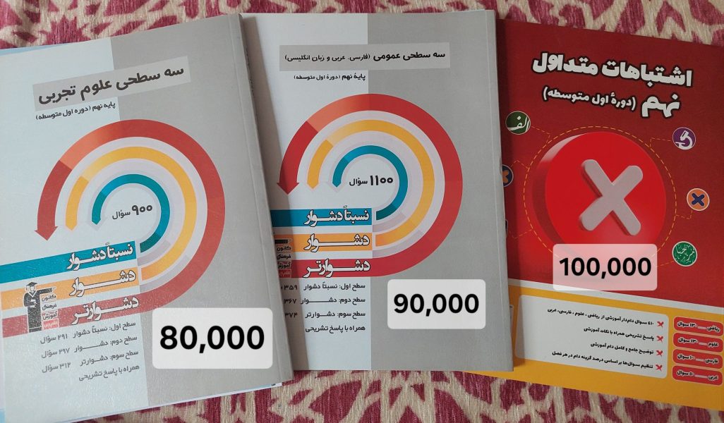 برگه هاشون پاره یا کنده نشدن به جز سه سطحی و سیرتاپیاز ریاضی که اونم با چسب درستش کردم و قیمتش و خیلی پایین آوردم.