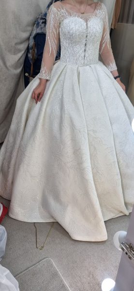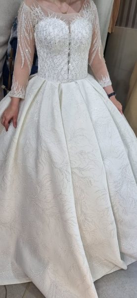 لباس مناسب نامزدی عروسی هست لباس استین داره دنباله داره کارشده رو لباس خیلی کار شیک و جدیده