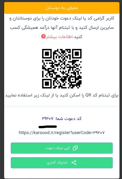 تو گوگل سرچ کنید کارسود بعد میزنید رو ثبت نام بعد شماره و رمز عبور خودتون رو که دوست دارید میزنیدتاکید میکنم برای اینکه درآمد بالایی داشته باشید کد معرف رو باید بزنید29207این کد معرف رو در قسمت کد معرف بنویسید.