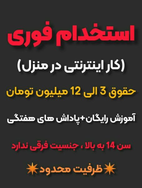 ‼استخدام فوری جهت کاراینترنتی درمنزل❌ با شماره تماس نگیرید❌. ب آیدی مراجعه کنید ❌با شمار تماس نگیرید❌. پاسخ گویی نمیشود ب آیدی مراجعه کنید @Barati0
